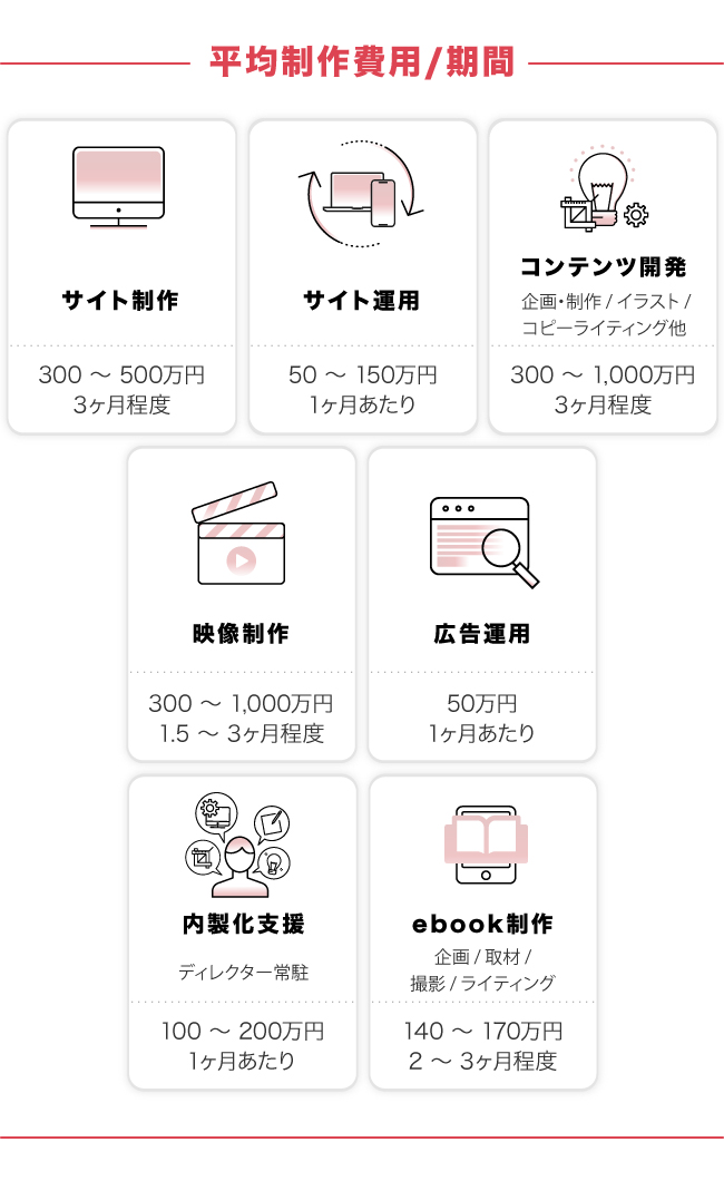 制作費用および制作にかかる期間の平均的な数値をまとめました。