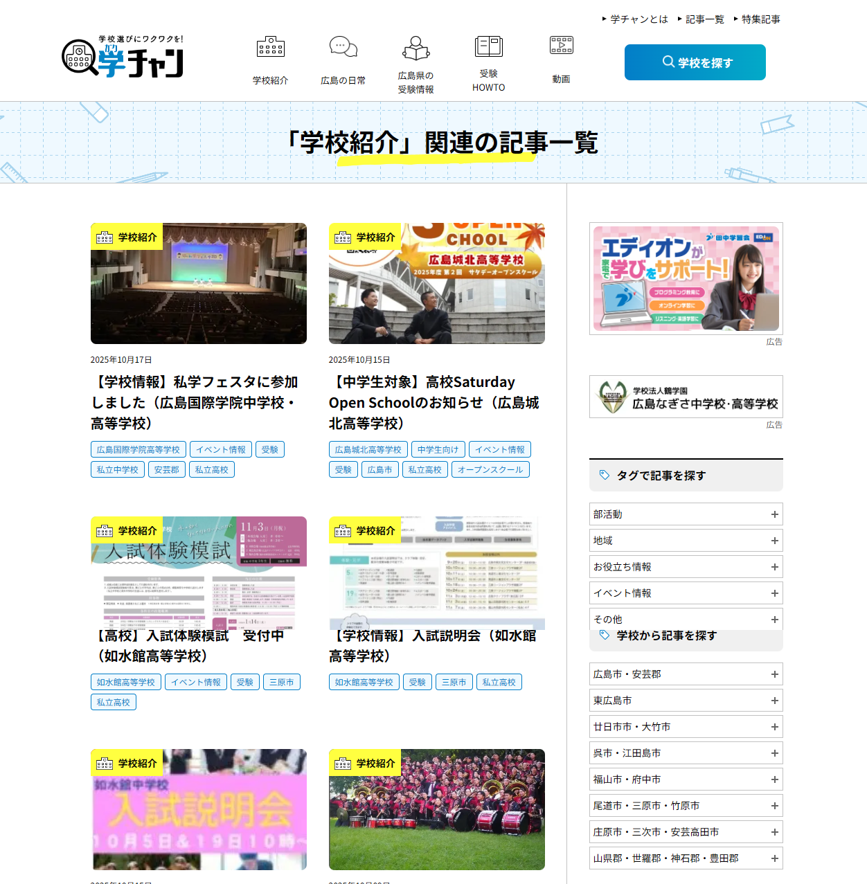 受験を控える学生に、信頼できる学校情報を届けるオウンドメディア「学チャン」の立ち上げをご支援しました。